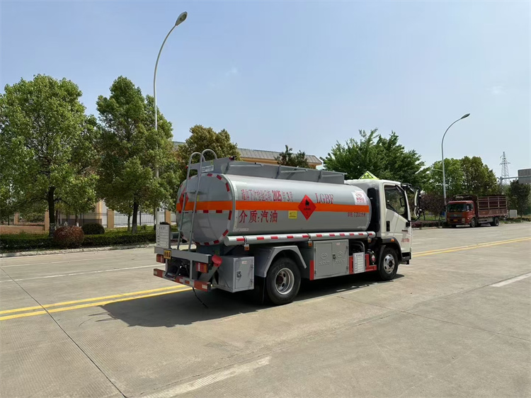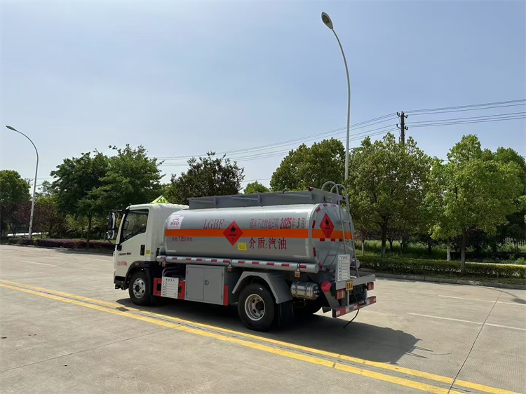 罐体配置:公告容积6.36立方,采用Q235优质碳钢板材,标配大流量油泵(可泵进泵出),标配通仓带欧标全套下装油系统(含1个下装卸油阀、1个油气回收阀、1个油气回收接口、1套气动组合开关、1个防溢流探杆和1个插座),一只欧标罐盖,一个海底阀,罐体顶部两侧带折叠升降防护栏,标配颜色灰色,罐体两侧正中贴3M-1级橙色反光带,贴三个“易燃液体”标识,安全告示牌,合适位置安装一只工具箱,其它均为厂家标配。